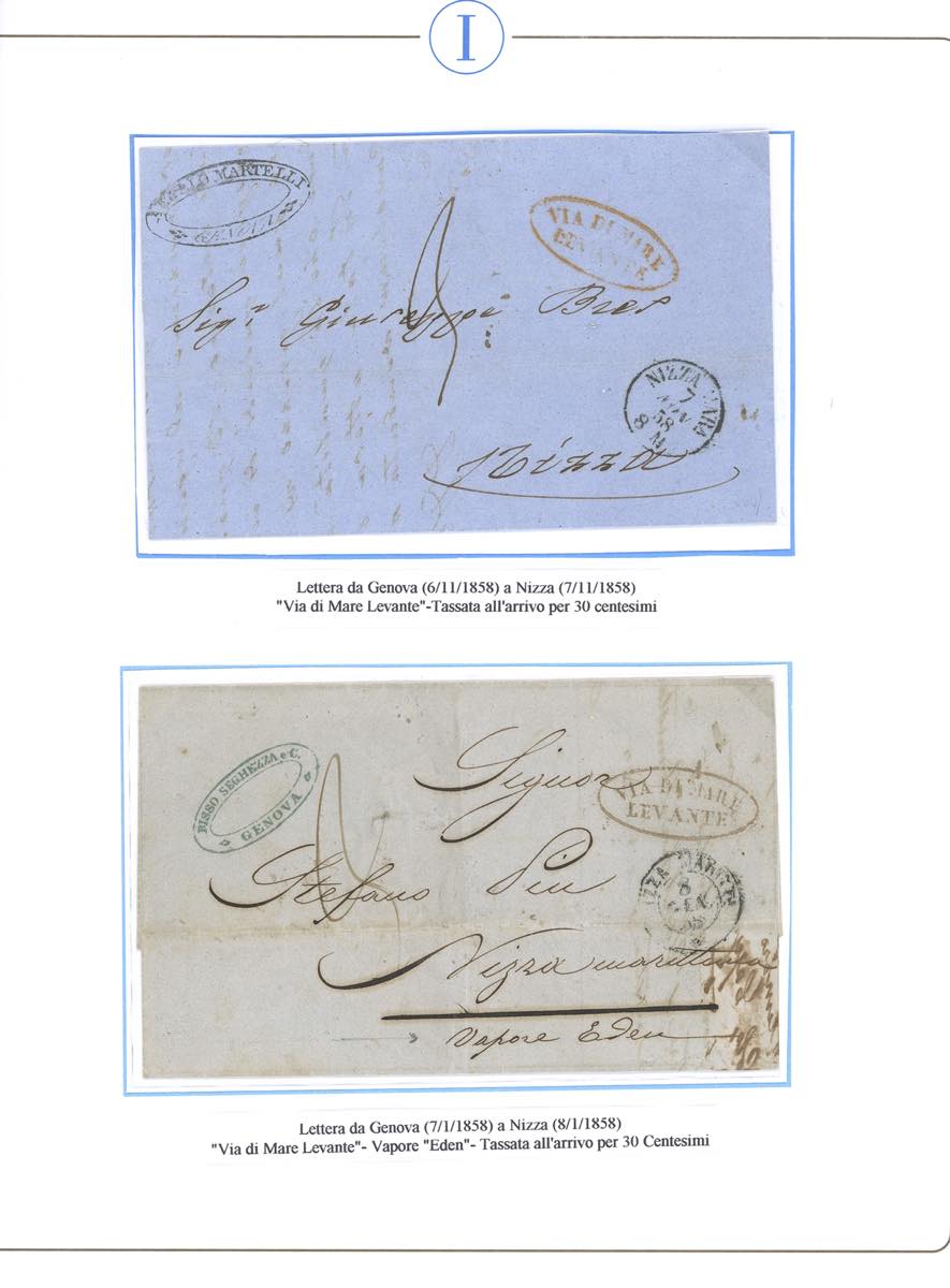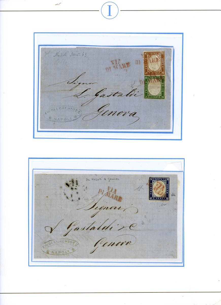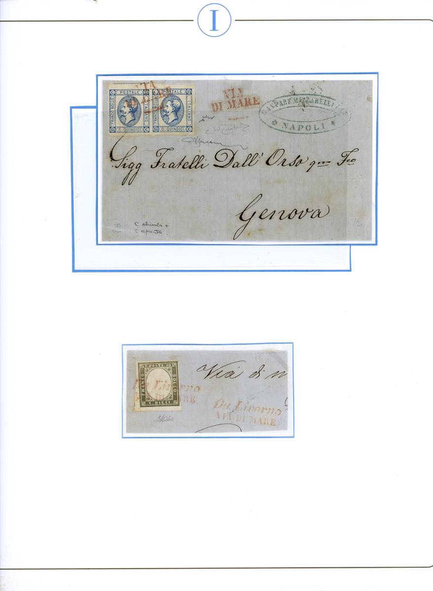 VIE DI MARE 1837/1865 - Interessante insieme di lettere, affrancate e non, ed alcuni francobolli con annulli di vie di mare. Notate diverse interessanti e rare presenze. Ottimo per studioso o per il dettaglio. Ex collezione Imperato.