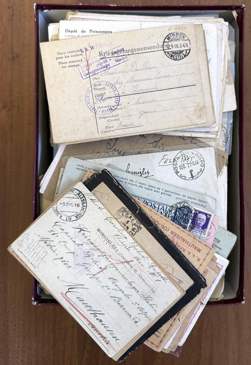 REGNO D'ITALIA POSTA MILITARE 1915/1944 - Alcune centinaia di lettere e cartoline relative a Prima e Seconda Guerra Mondiale, Progionieri di Guerra e Croce Rossa, in una scatola. Per specialista, di sicuro interesse.