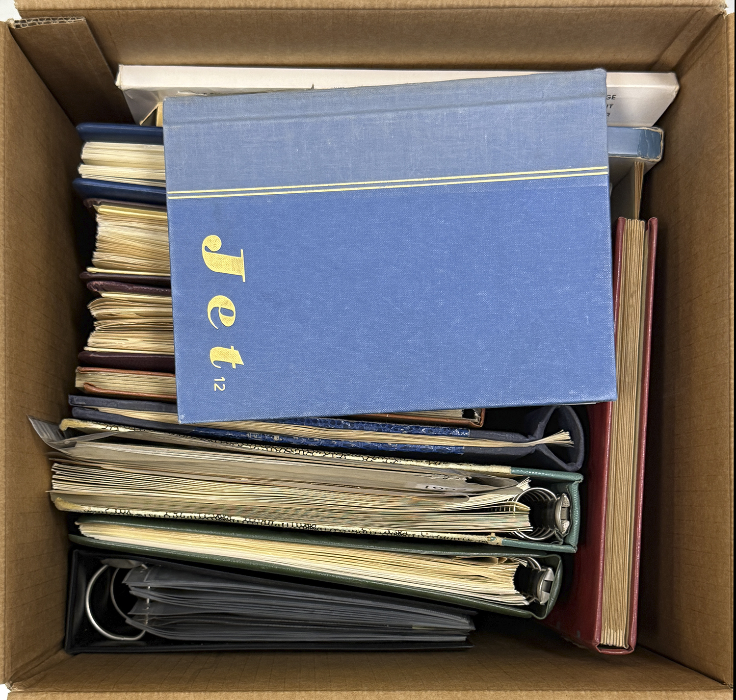 MONDIALI 1850/1996 - Accumulazione di francobolli nuovi e usati del periodo in 13 album o raccoglitori, in uno scatolone. Notati diversi album di Germania. Divertente.