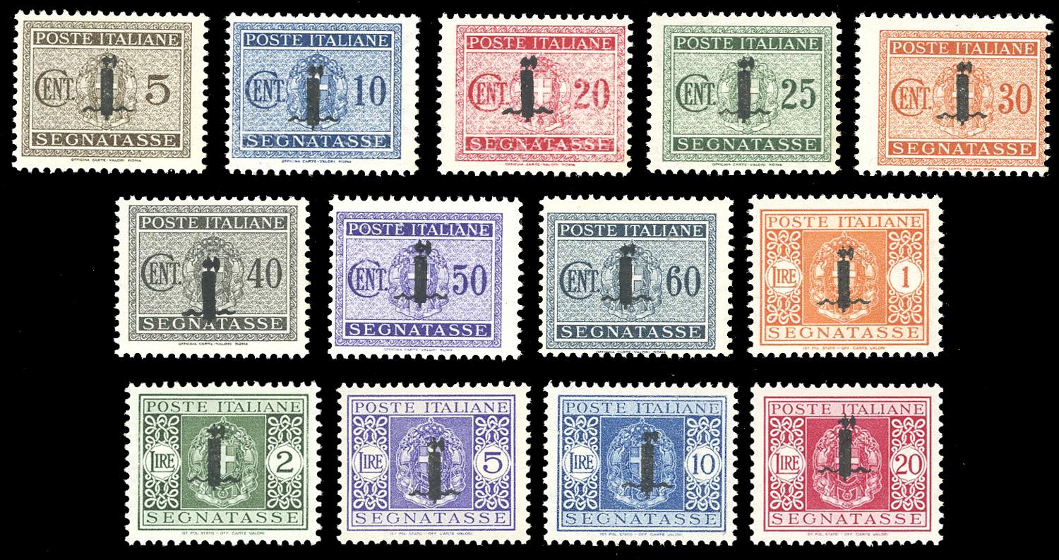 SEGNATASSE 1944 - Soprastampati fascetto, serie completa (60/72), nuovi, gomma originale integra, perfetti. Raybaudi per gli alti valori.