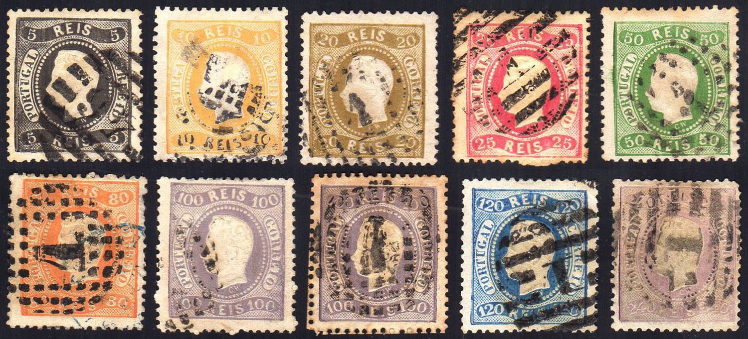 PORTOGALLO 1867/70 - Re Luigi I, dent. 12 1/2, serie completa (26/34), usati, ottimo stato.