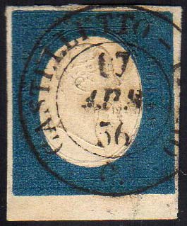 CASTELLETTO TICINO, punti 13 - 20 cent. (8), bordo di foglio, perfetto, usato il 17/4/1856. Bello. Cert. G.Bolaffi.