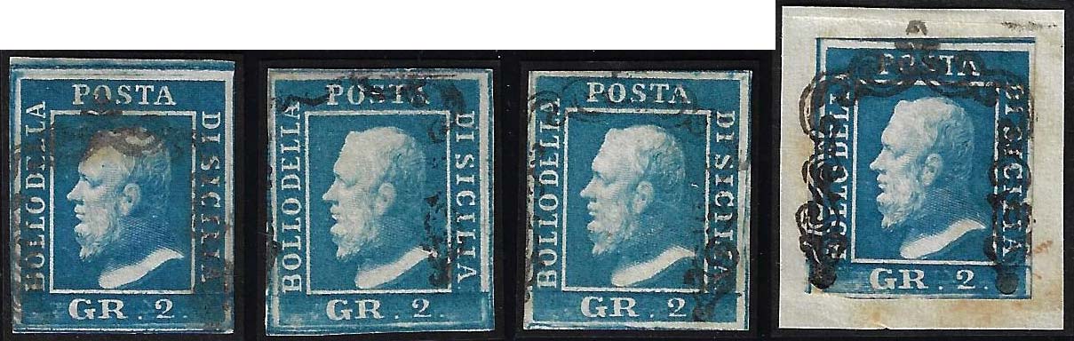 1859 - 2 grana, III tavola, quattro esemplari usati (8), perfetti, rispettivamente delle posizioni: 8, 30, 60, 80. Molto belli, tutti ... Leggi tutto