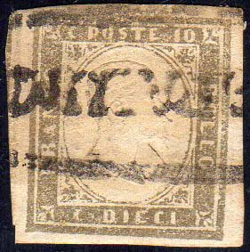 ROCCAPALUMBA, punti R3 - 10 cent. (Sardegna 14C), perfetto, usato. Unico esemplare sciolto noto! Ex coll. Aquila.