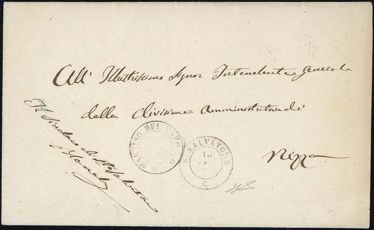 NIZZA MARITTIMA, CONTEA - S. SALVATORE, punti 13 - Sovracoperta di lettera in franchigia del 13/1/1859, accompagnata dal bollo di S. ... Leggi tutto