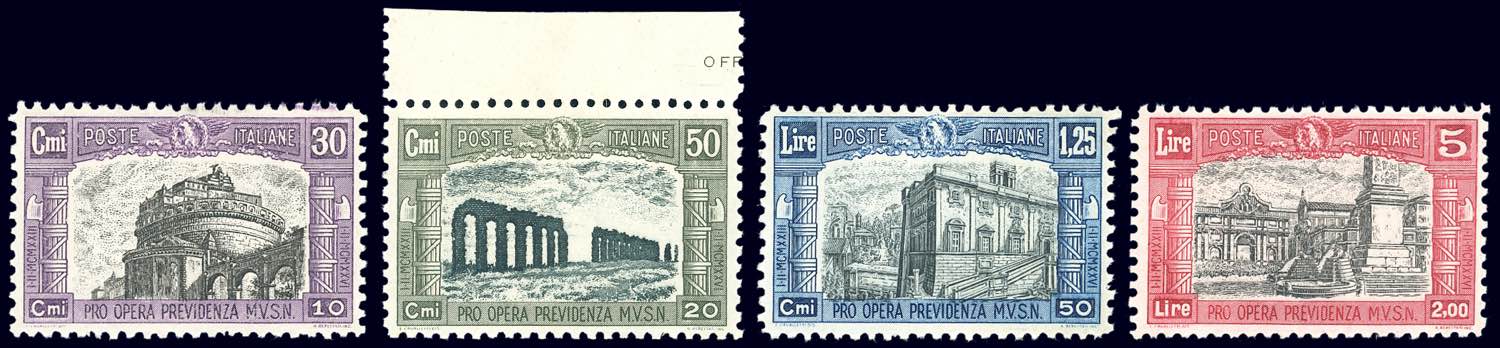 1928 - Milizia II (220/223), gomma originale integra, perfetti e ben centrati. Ferrario.