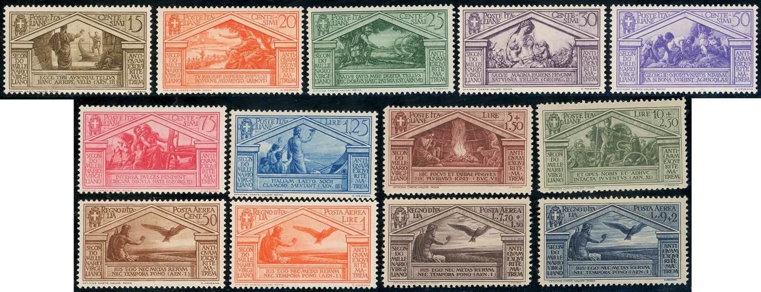 1930 - Virgilio (282/290+A), gomma integra, perfetti. Molto freschi, buona centratura. Alti valori cert. Ferrario.