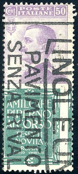 Lotto 1171 - 1924 - 50 cent. Piperno, vignetta fortemente spostata (13), ...