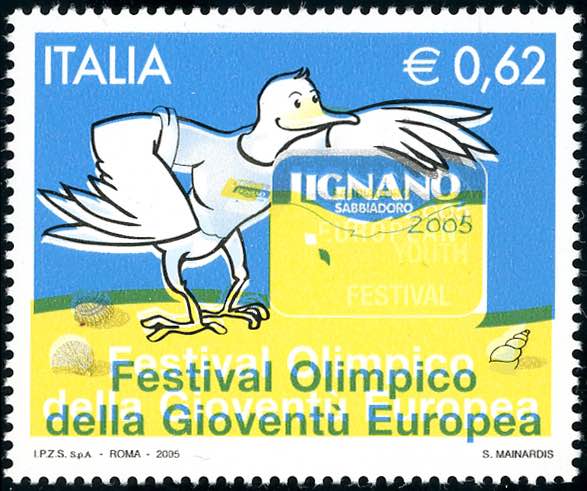 2005 - 0,62 € Festival Olimpico della Gioventù, senza la stampa del rosso (Sass.spec.2480Ab), gomma integra, perfetto. Raro. Cert. Avi.