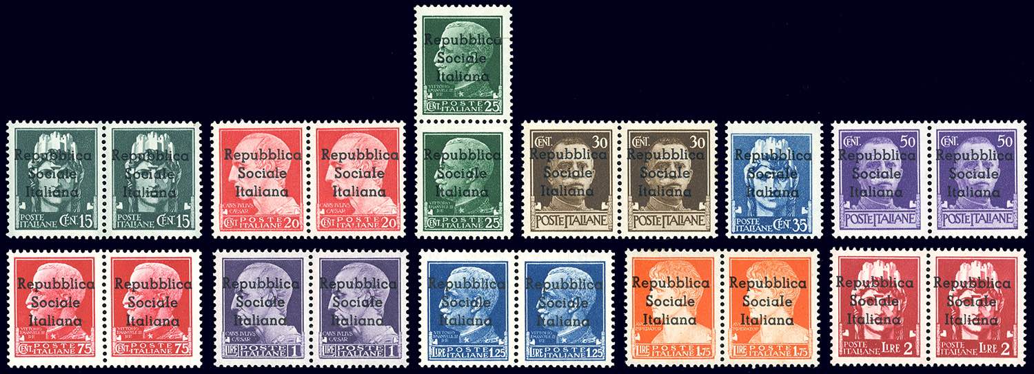 TERAMO 1945 - Undici esemplari di posta ordinaria (1/11), tutti con varietà non catalogata "I al posto della L", "SOCIAIE", in coppia con il normale, ad eccezione del 35 cent., gomma integra, perfetti. Molto rari! Raybaudi per tutti i valori, cert. E.Diena e Oro Raybaudi per il 75 cent., cert. Ferrario.