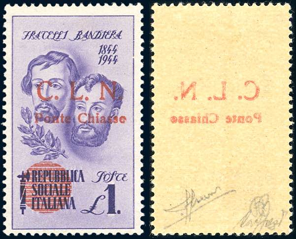 Lotto 1684 - PONTE CHIASSO 1945 - 1 l. Fratelli Bandiera, decalco della ...