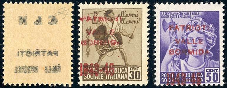 VALLE BORMIDA 1945 - 20 cent. decalco della soprastampa (2e), 30 cent. soprastampa spostata a sinistra (4c), 50 cent. soprastampa spostata ... Leggi tutto