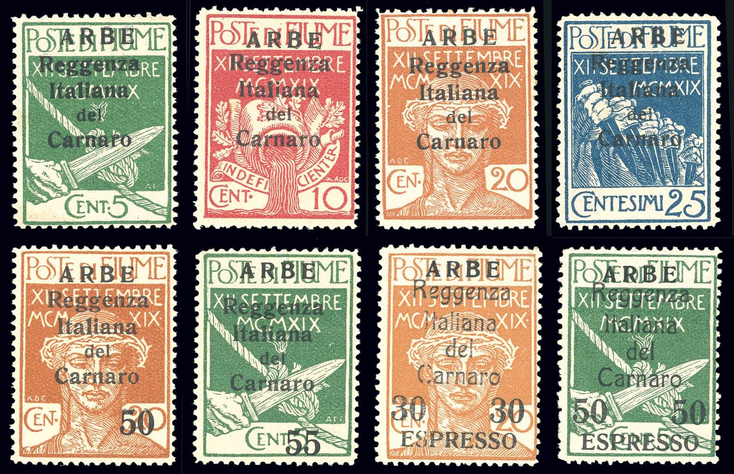 ARBE 1920 - Soprastampa in caratteri piccoli (5/10+E1/2), gomma integra, perfetti. Belli. Cert. Avi.