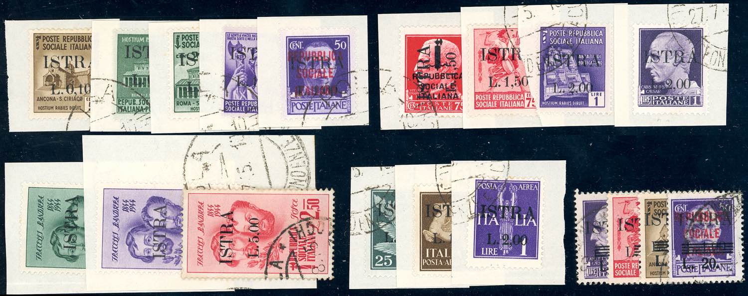 OCCUPAZIONE JUGOSLAVA ISTRIA 1945 - Le due emissioni (22/36,37,40), perfetti, usati, generalmente su frammento. Sorani e Raybaudi per il n. 33.