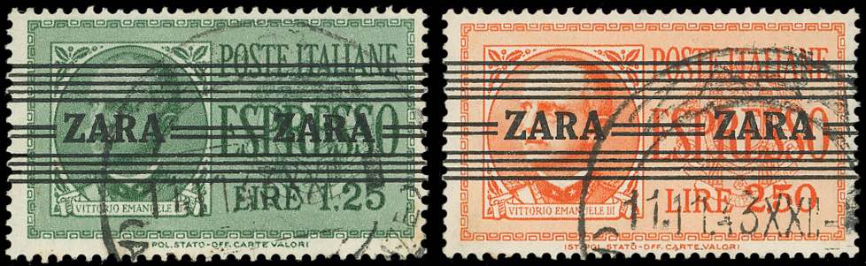 OCCUPAZIONE TEDESCA ZARA ESPRESSI 1943 - Soprastampati "Zara" (3/4), usati, perfetti. Raybaudi.