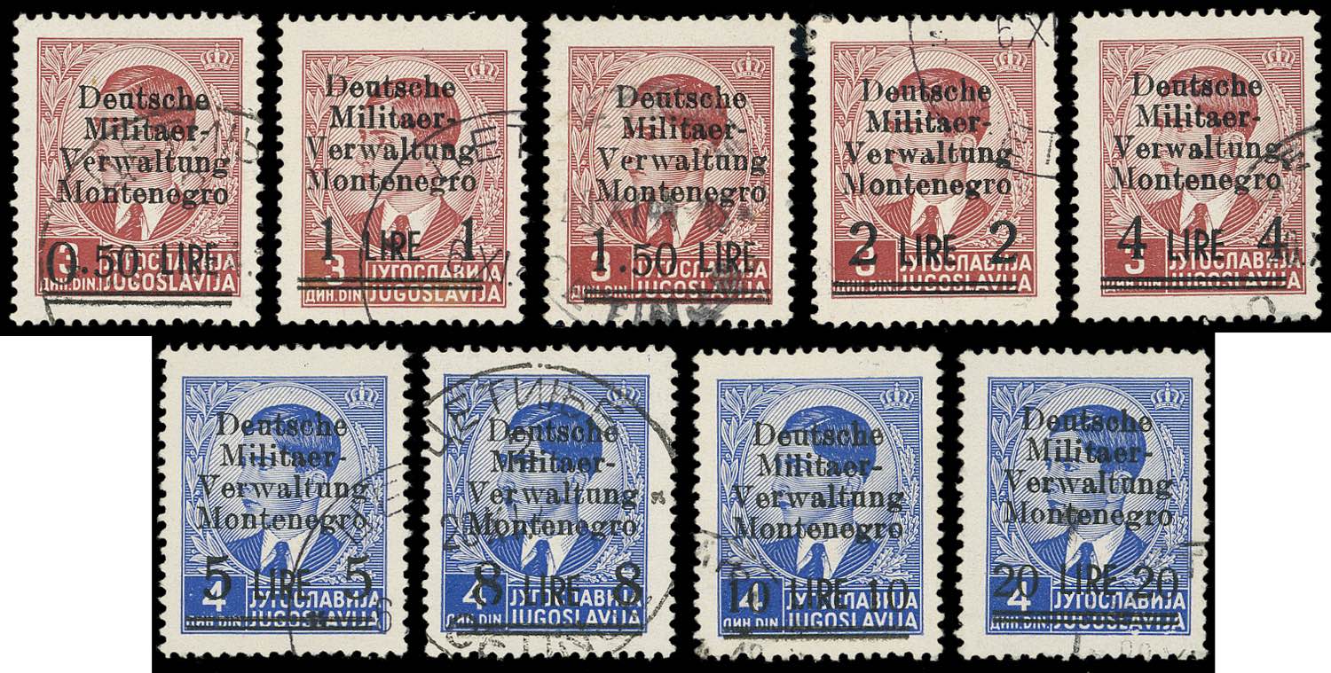 OCCUPAZIONE TEDESCA MONTENEGRO 1943 - Soprastampati (1/9), usati, perfetti.