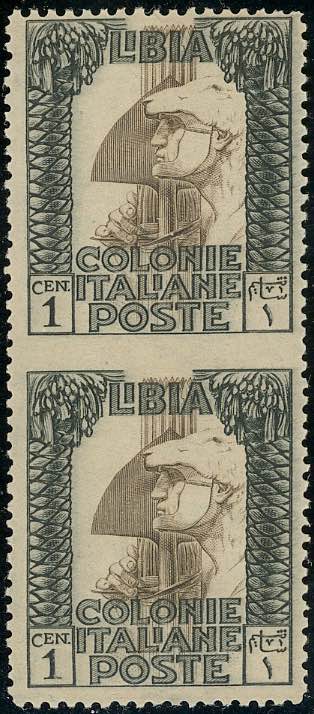 Lotto 2078 - 1921 - 1 cent. Pittorica, coppia verticale non dentellata ...