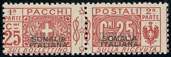 PACCHI POSTALI 1917 - 25 cent. rosso, doppia soprastampa (4a), nuovo, gomma originale integra, perfetto. Pochissimi esemplari noti. Cert. ... Leggi tutto