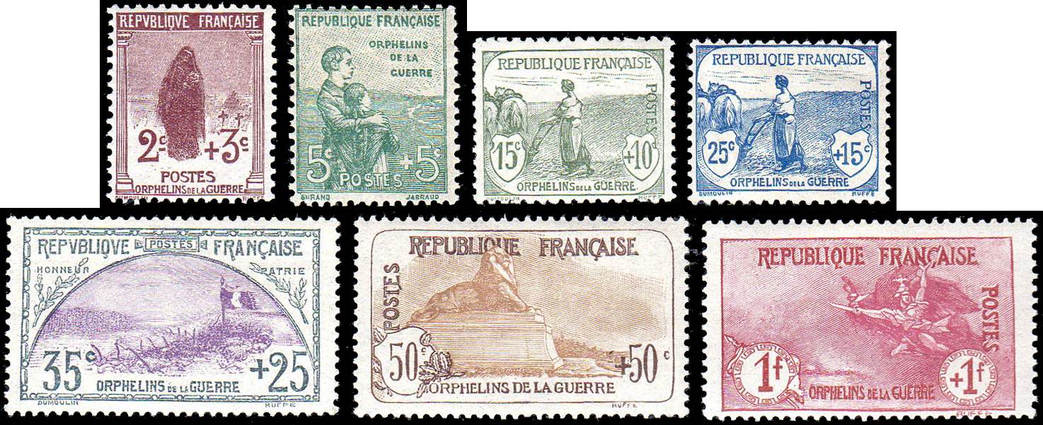 FRANCIA 1917/19 - Orfanelli, serietta di 7 valori (148/154), gomma originale, perfetti.