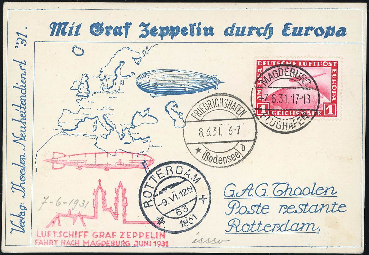 GERMANIA REICH POSTA AEREA ZEPPELIN 1931 - Cartolina con annulli speciali del volo Zeppelin Fahrt Nach Magdeburg del 7/6/1931, francobollo perfetto.