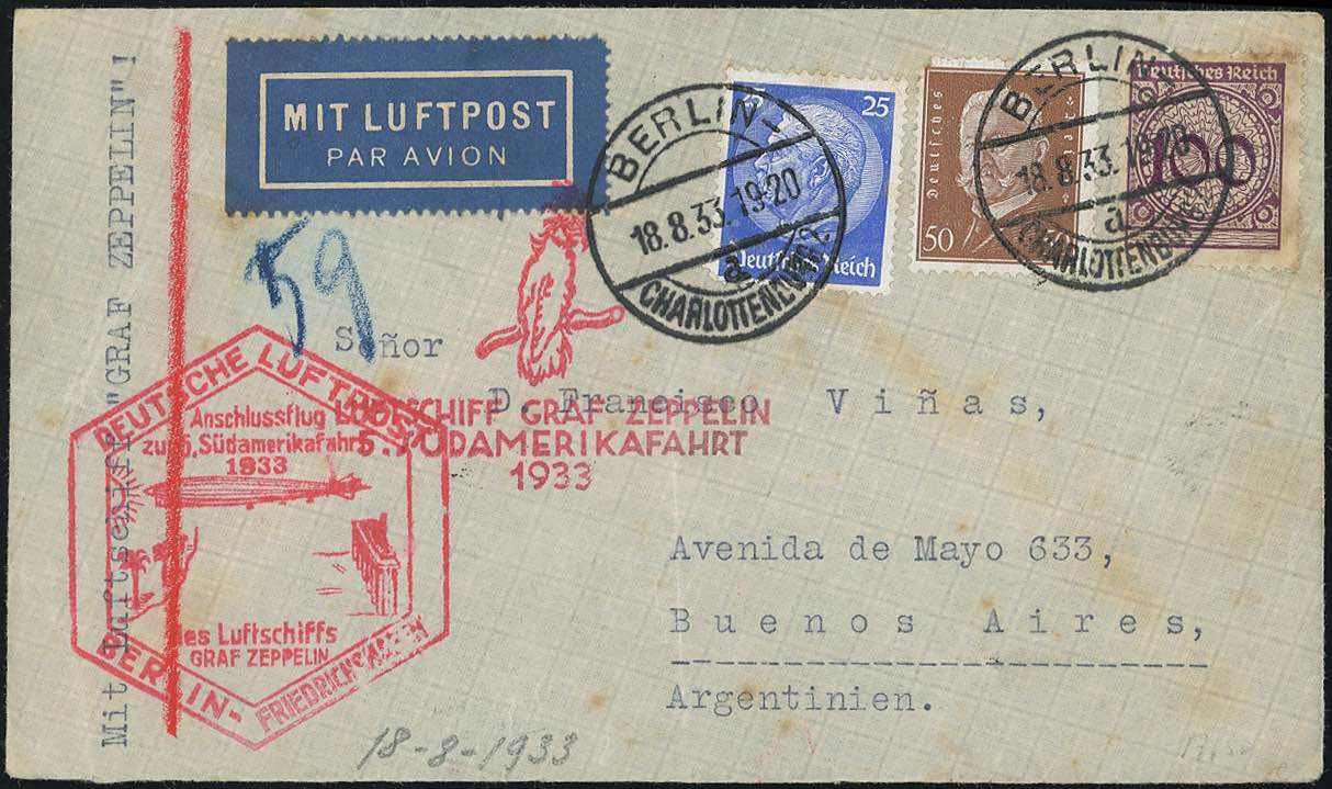 GERMANIA REICH POSTA AEREA ZEPPELIN 1933 - Aerogramma da Berlino 18/8/1933 a Buenos Aires, con bolli speciali del 5° e 6°Sudamerikafahrt.