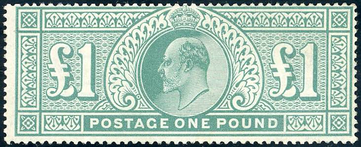GRAN BRETAGNA 1902 - 1 sterlina verde, Edoardo VII (Unif.121), nuovo, gomma originale integra, perfetto, MNH. Molto fresco. Emilio Diena, cert. Raybaudi.