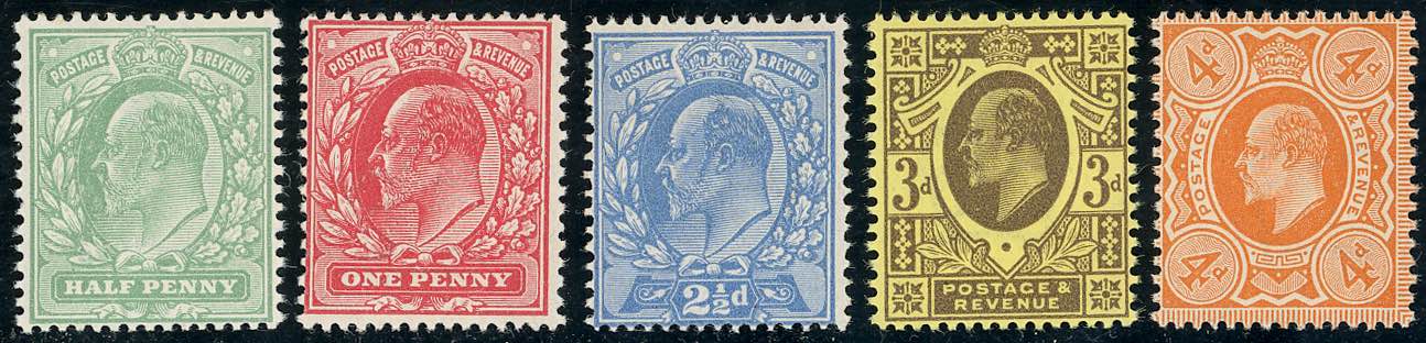 GRAN BRETAGNA 1911 - Edoardo VII, tipi precedenti dent. 15 x 14 (Unif.124/128), nuovi, gomma originale integra, MNH.