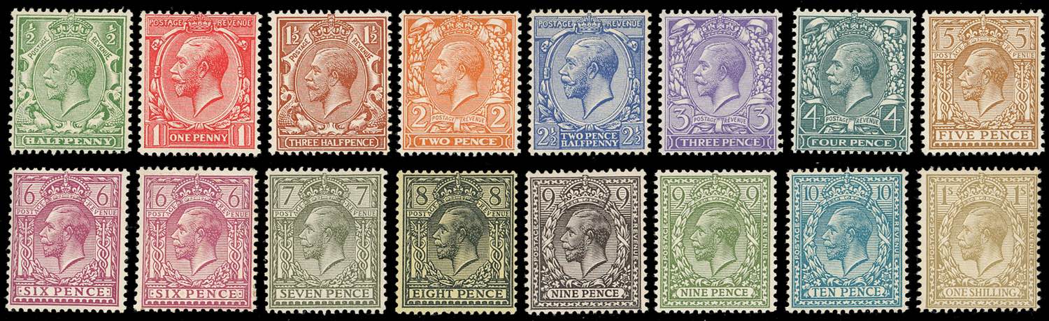 GRAN BRETAGNA 1912/22 - Giorgio V, serie completa filigrana Royal Cypher (Unif.139/152+147a dent.14), nuovi, gomma originale integra, perfetti, MNH. Molto belli.