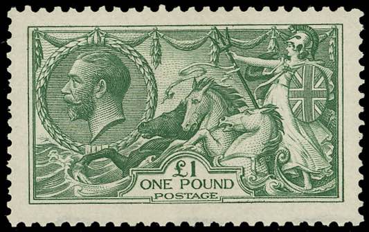 GRAN BRETAGNA 1913 - (Unif.n.156), 1 sterlina verde cavalli marini, tiratura Waterlow, nuovo, gomma originale integra, MNH, perfetto. Splendido per freschezza e centratura. Raro di questa qualità. Cert. Oro Raybaudi.