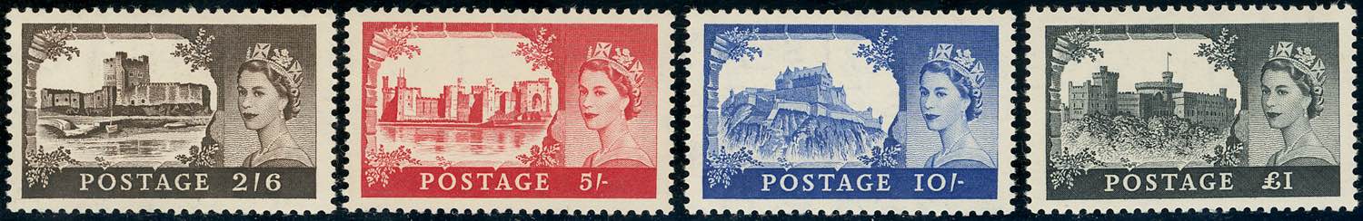 Lotto 2590 - GRAN BRETAGNA 1955 - Castelli ed Elisabetta (Unif.283/286), ...