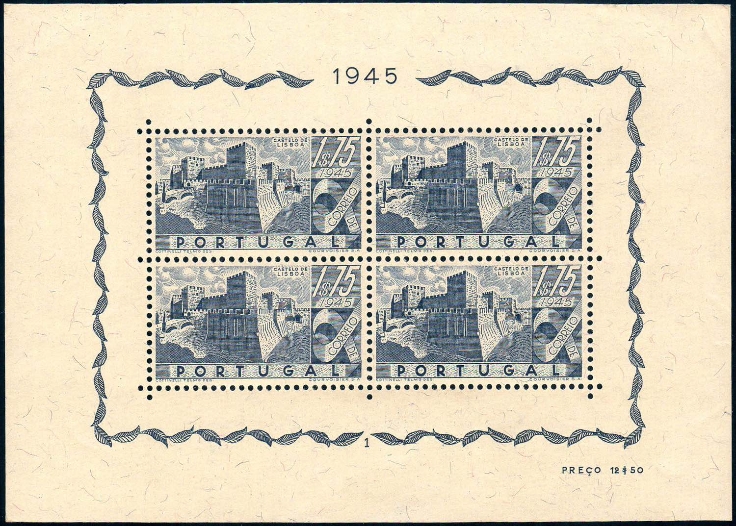 PORTOGALLO FOGLIETTI 1945 - 1,75 e. Castelli, foglietto (BF10), gomma originale, perfetto.