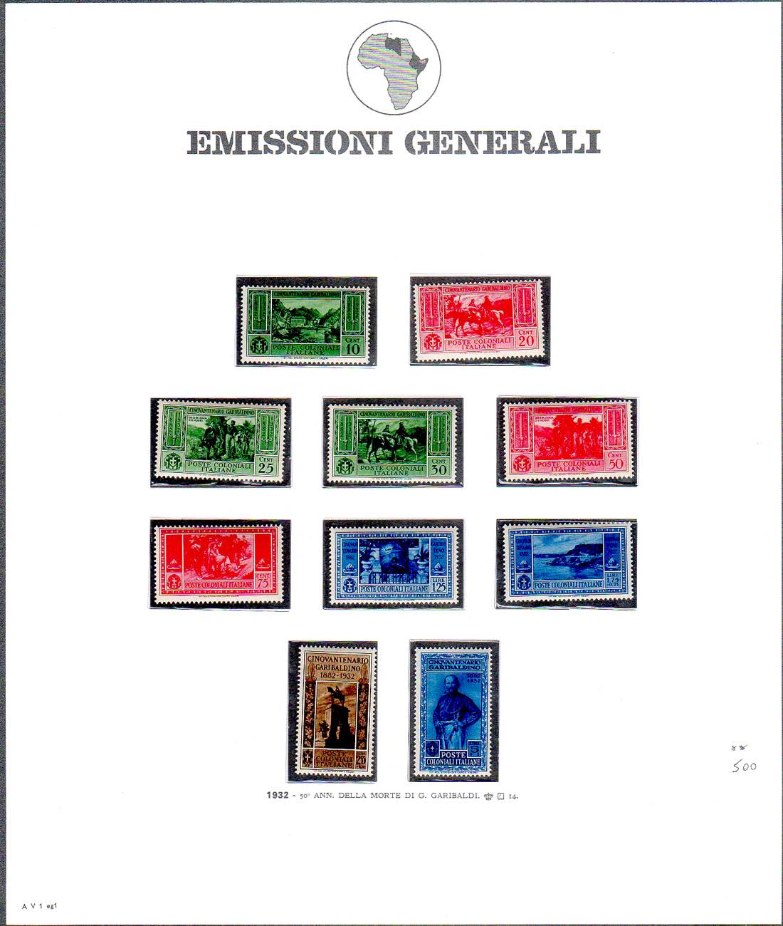 COLONIE ITALIANE EMISSIONI GENERALI - A.O.I. 1932/1942 - Avanzatissima collezione di francobolli nuovi del periodo, in album Bolaffi. Ottima qualità.
