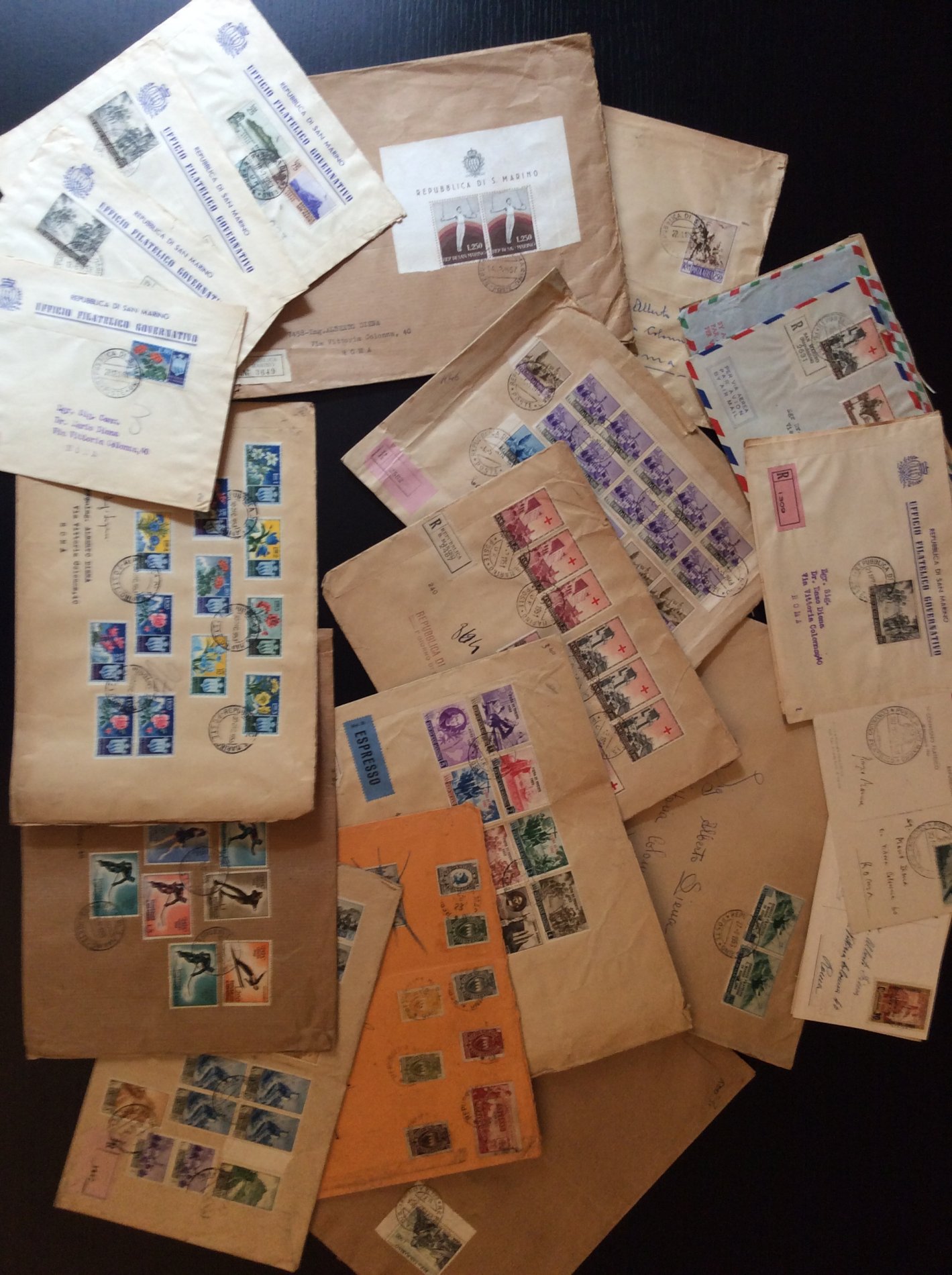 SAN MARINO 1923/1955 - Ventitre buste e tre cartoline con interessanti e non comuni affrancature del periodo, alcune con serie complete. Alto valore di catalogo.