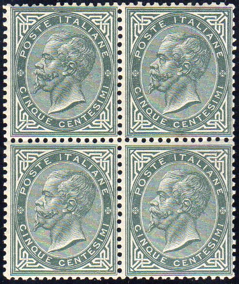 Lotto 1425 - 1863 - 5 cent. De La Rue, tiratura di Torino (T16), blocco ...