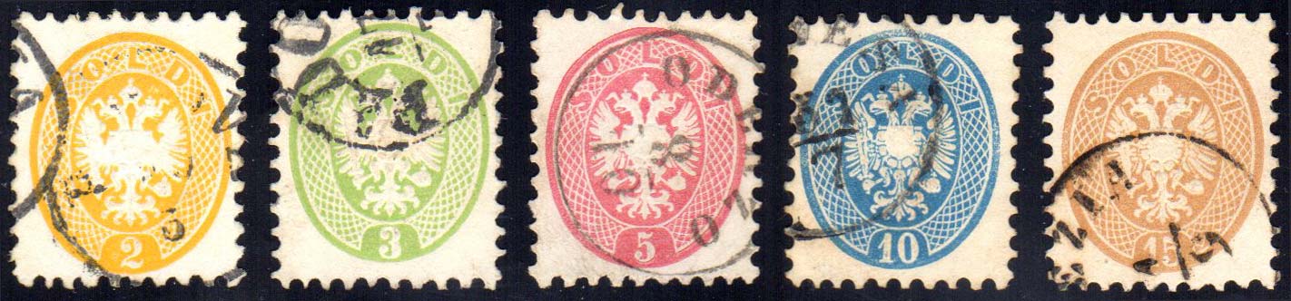 1864/65 - V emissione, dent. 9 1/2 (41/45), perfetti, usati. Raybaudi e cert. Fiecchi per il 2 soldi.