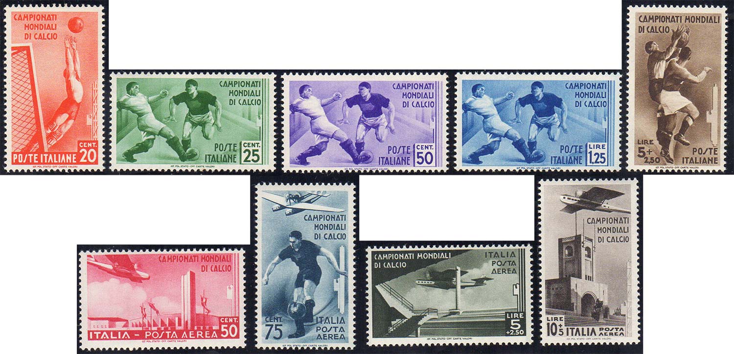 Lotto 1646 - 1934 - Mondiali di calcio (357/361+A), gomma integra, ...