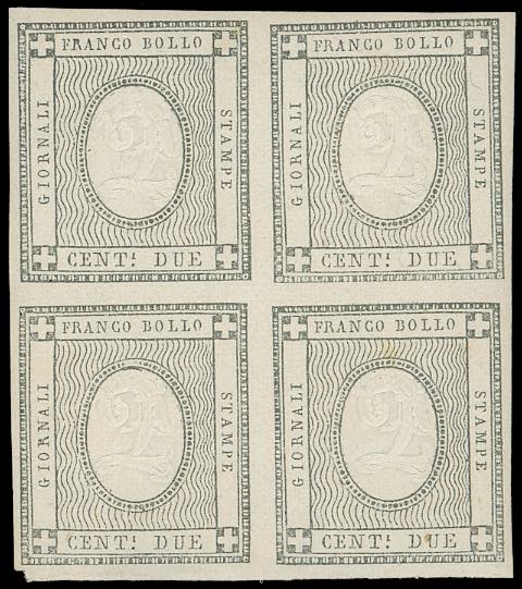 Lotto 887 - 1861 - 2 cent. grigio nero (20), blocco di quattro, gomma ...