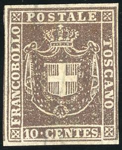 1860 - 10 cent. bruno (19), nuovo, gomma originale, perfetto. Molto fresco e raro. Emilio, A.Diena, cert. Ferrario.