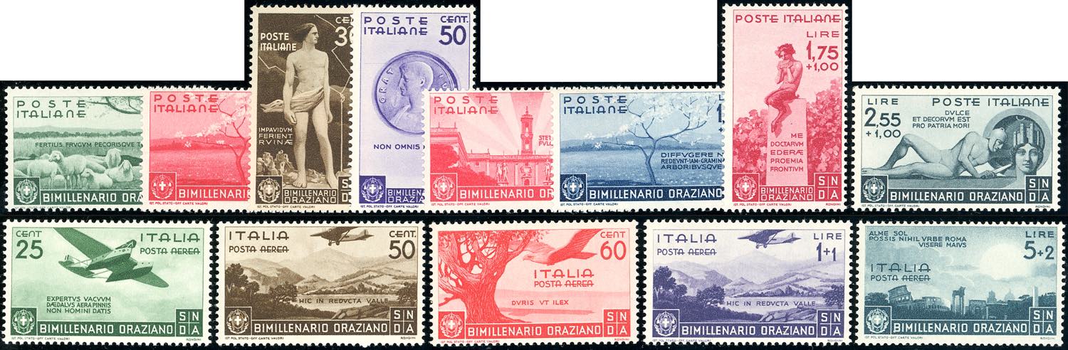 1936 - Orazio (398/405+A), gomma integra, perfetti, ottima qualità. Alti valori. Ferrario.