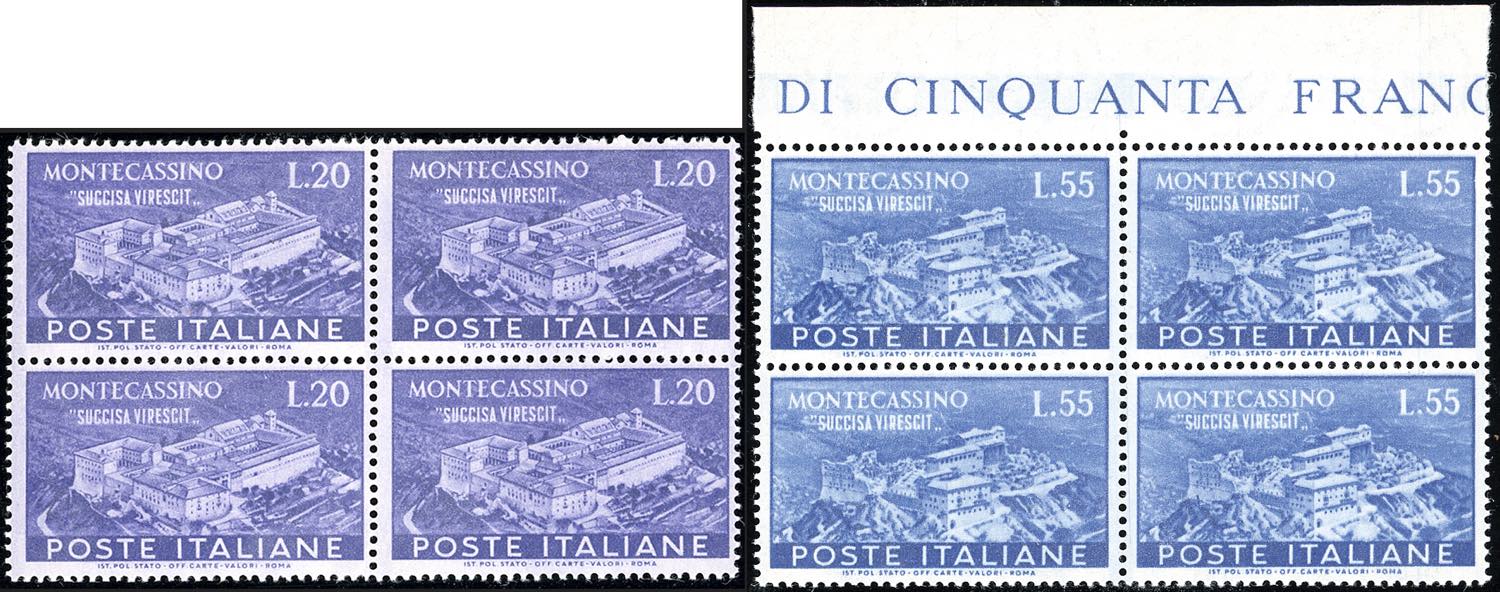 Lotto 1741 - 1951 - Montecassino (664/665), ottima centratura, blocchi ...