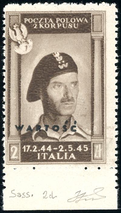 POSTA AEREA 1946 - 5 z. su 2 z. bruno nero (2), senza "5zl" e trattini, solo "WARTOSC" in soprastampa, bordo di foglio, nuovo, senza gomma ... Leggi tutto