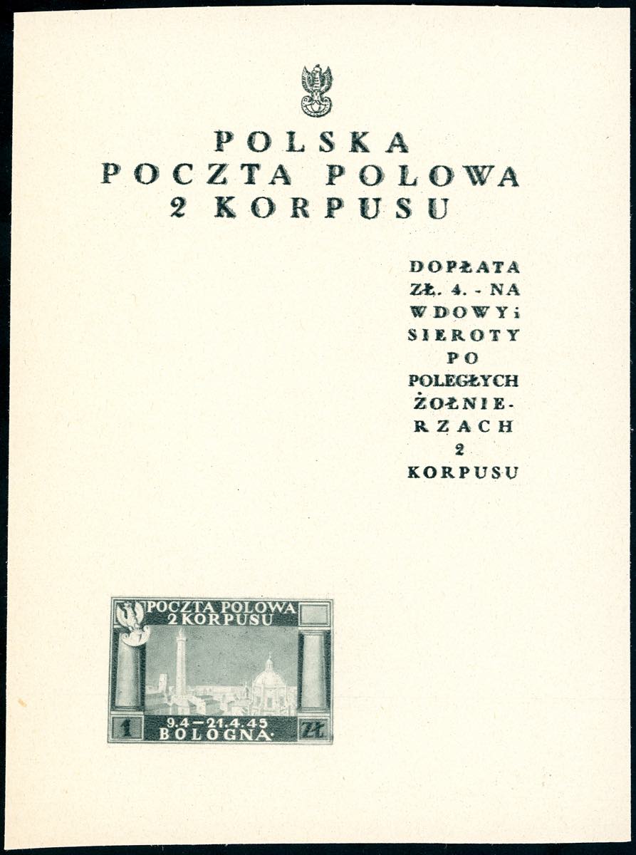 FOGLIETTI 1946 - Vittorie polacche, foglietto su carta bianca, senza il timbro e senza la stampa dei valori da 45 e 55 g. e da 2 z. (1Ag), ... Leggi tutto