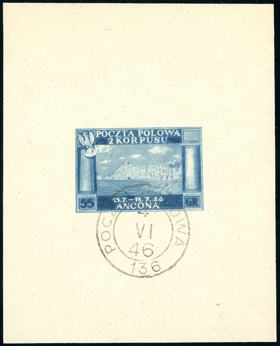 FOGLIETTI 1946 - 55 g. Vittorie polacche in foglietto senza iscrizioni (F2A), usato, perfetto. Molto raro, pochissimi esemplari noti. ... Leggi tutto