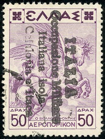 EMISSIONI DI ARGOSTOLI POSTA AEREA 1941 - 50 d., soprastampa a mano (22), usato, perfetto. R.Mondolfo, cert. Oro Raybaudi, Chiavarello e Ferrario.