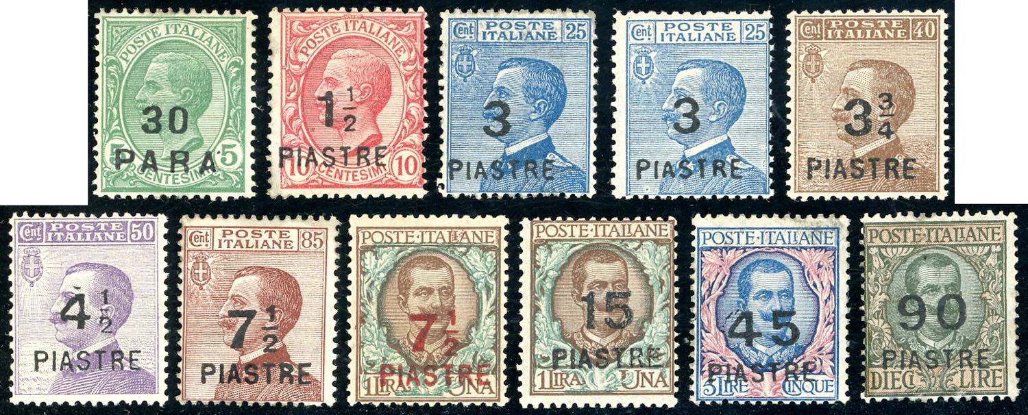 COSTANTINOPOLI 1922 - VIII emissione locale (58/67), gomma originale, leggerissima traccia di liguella, perfetti. Molto freschi.