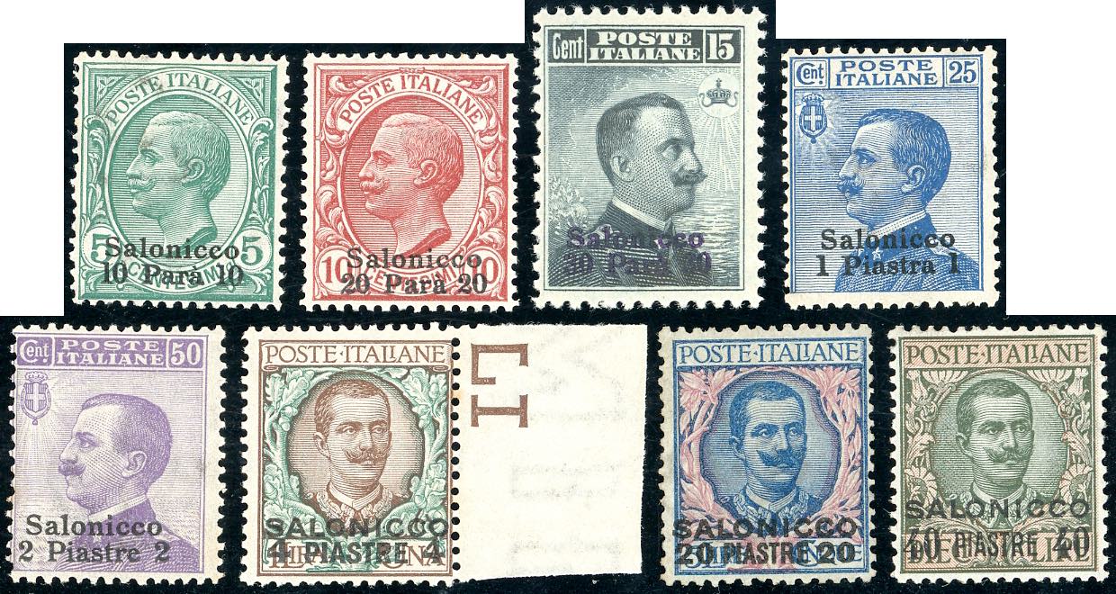 SALONICCO 1909/11 - Soprastampati (1/8), gomma originale, integra per i bassi valori, perfetti. A.Diena per gli alti valori.