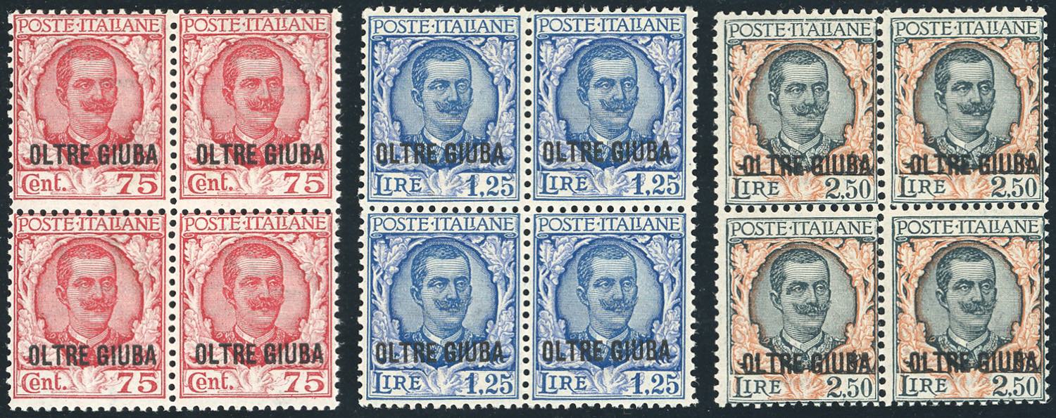 Lotto 2689 - 1926 - Floreale soprastampati (42/44), blocchi di quattro, ...