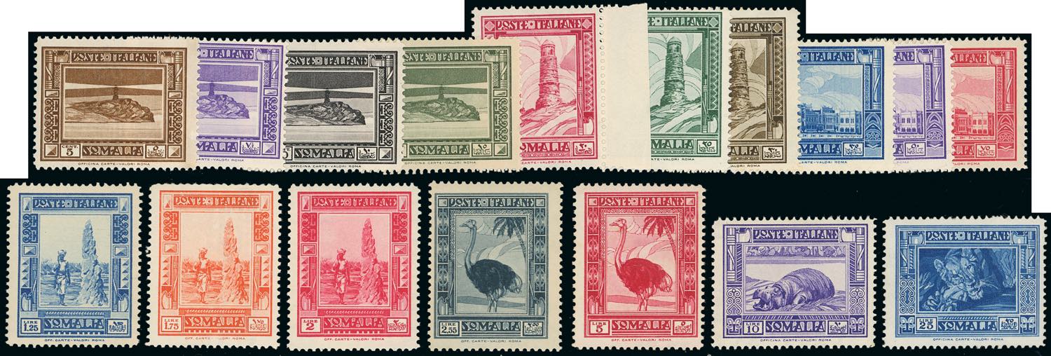 1935/38 - Pittorica, dent. 14, 17 valori (213/228,230), gomma integra, perfetti. Cert. Ferrario per gli alti valori.