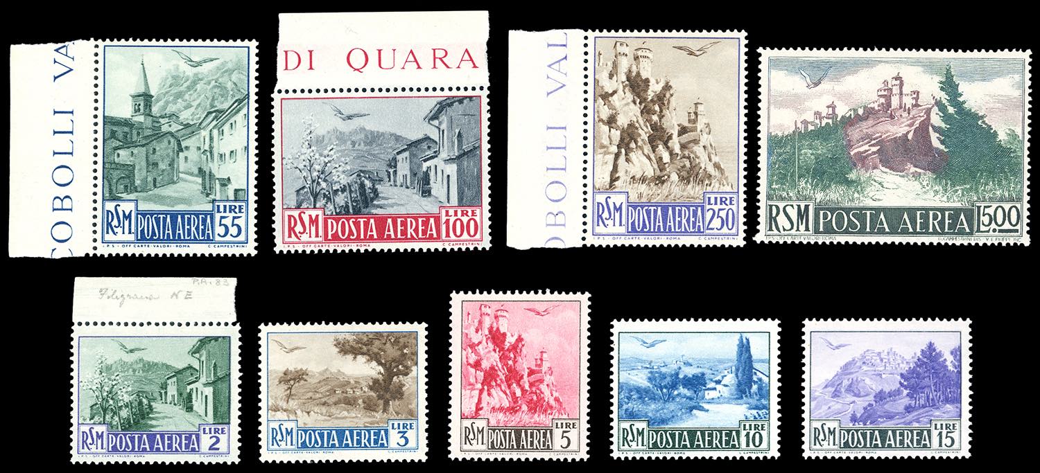 1950 - Vedute (83/91), gomma integra, perfetti. Ferrario per gli alti valori.