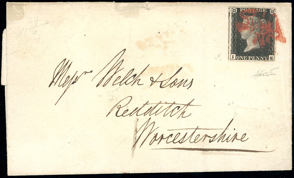 GRAN BRETAGNA 1840 - 1 p. Penny Black, I-E (1), perfetto e ben marginato, su sovracoperta di lettera da Dartmouth a Redditch. Ferrario.